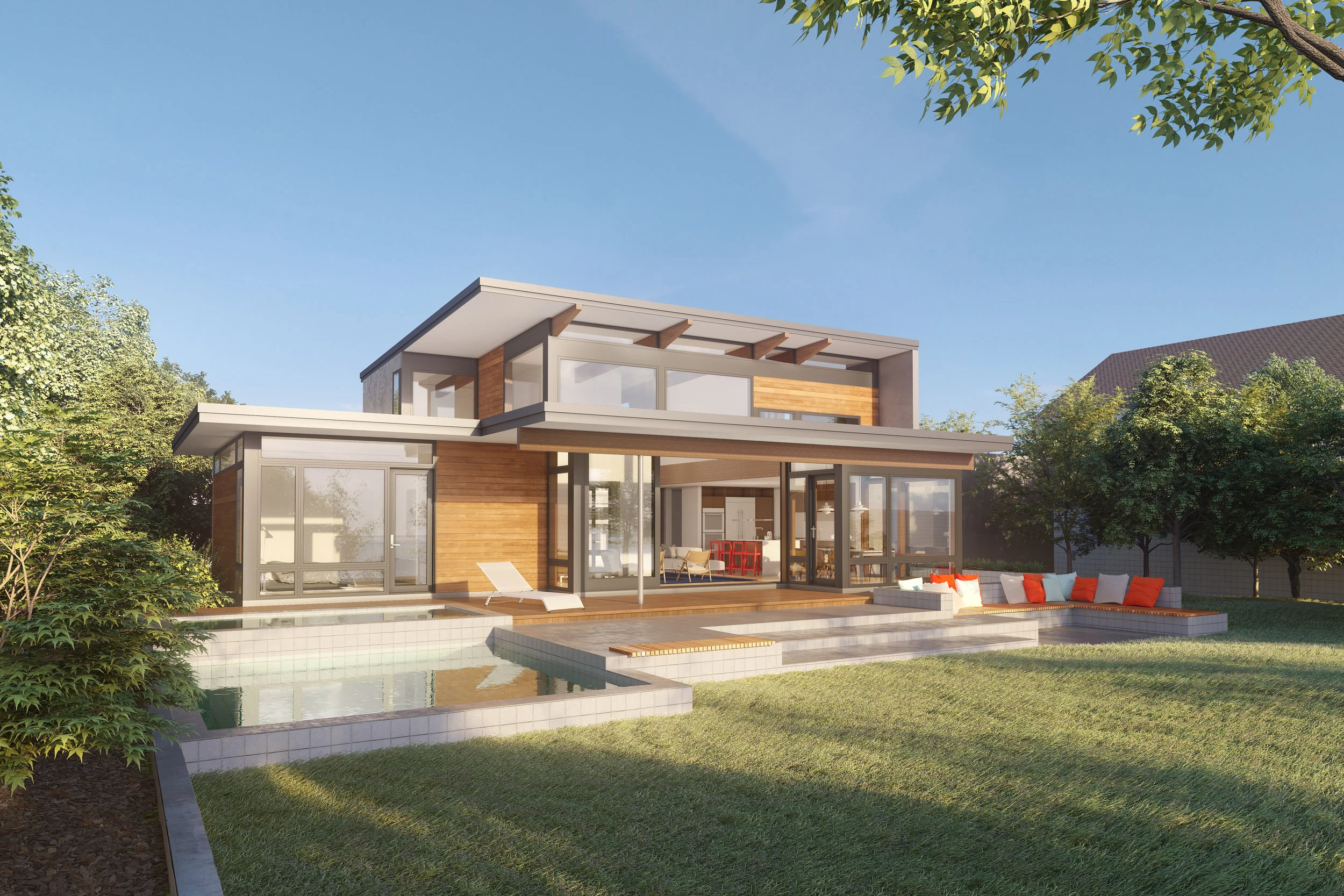 This is a compact design that affords great privacy to the front, but opens expansively to the rear. It will be a daily pleasure to pass from the cozy dining area to the double-height living area—and from there, onto a back deck through a retracting glass wall.