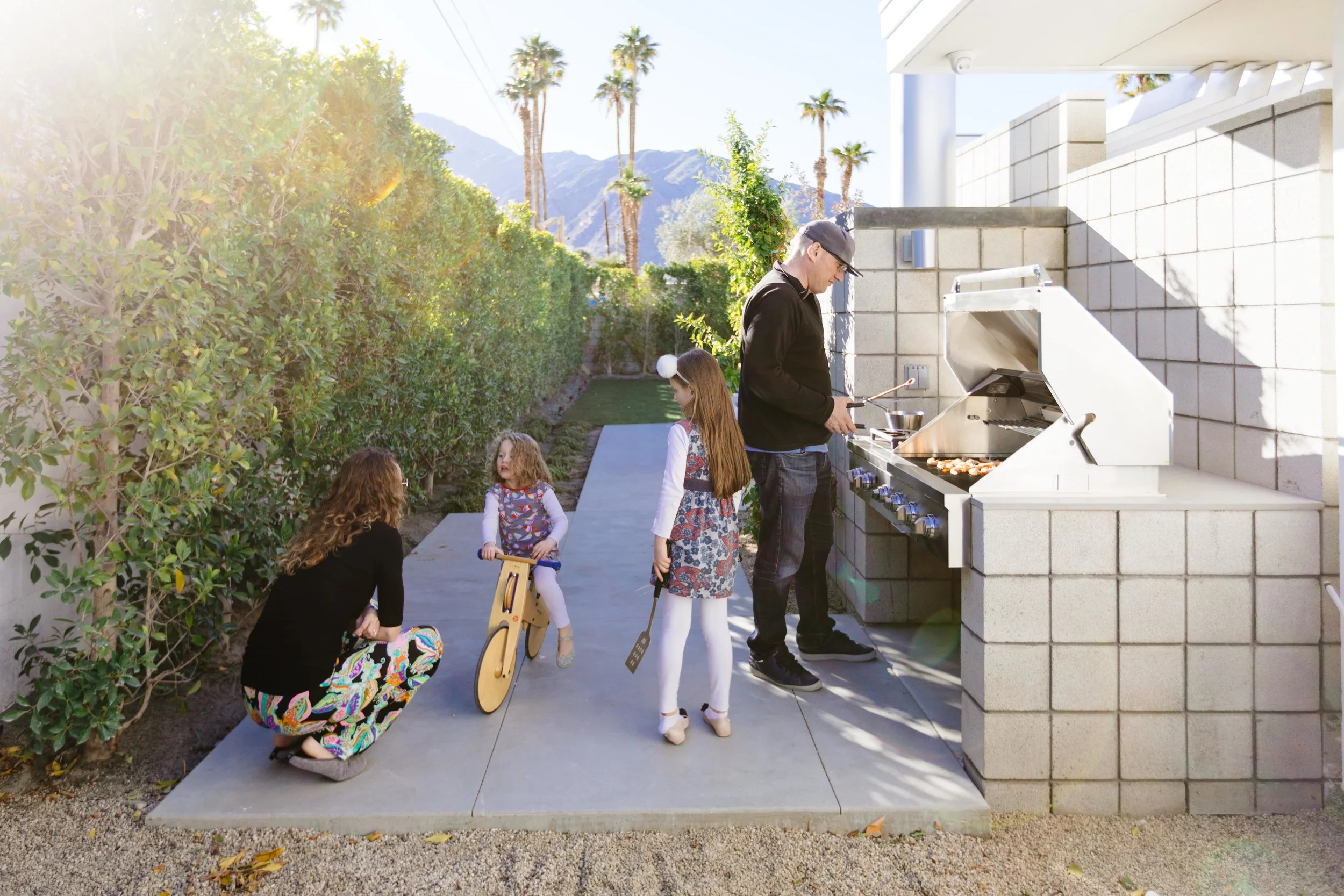 That’s a wrap! Joel and Meelena Turkel spent some quality time behind the camera for a small series of Dwell videos produced by 22 Waves Creative—gearing up for a busy Modernism Week full of home tours, design discussions, and parties at Axiom Desert House. Furnishings from Resource Furniture, lighting design by Tirschwell & Co. Inc. Lighting Design, lighting by Cerno and Eklipse Architectural Lighting, living wall by Suite Plants, windows and doors from Marvin, paint from Dunn-Edwards, beams from BC Timberframe, and a thermally treated ash ceiling liner from Thermalwood Canada.